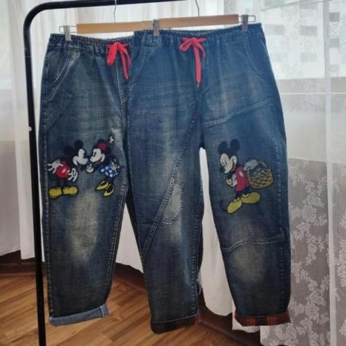 여자 배기 청바지 폐토풍 빅사이즈 커브 진 가을겨울 때묻은 와이드 바지 러시 BE4