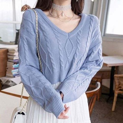 [셀럽하우스]여성 OSHW7457 크롭 브이넥 여자 데일리 꽈배기 스트릿 배꼽티