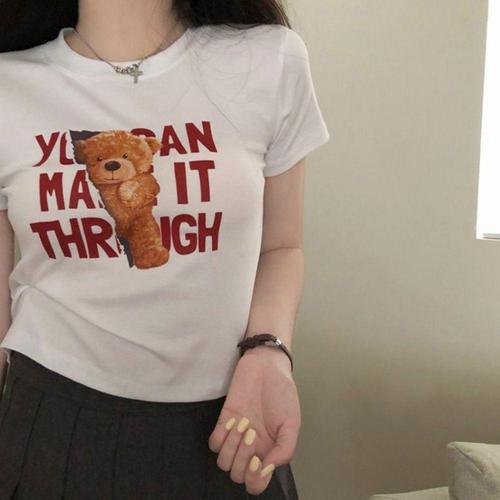 [셀럽하우스]곰돌이 XRYS5734 반팔 크롭티 배꼽티 여름 면 반팔티셔츠