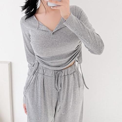 [신상오픈런]옆구리 무용복 배꼽티 긴팔 끈조절 셔링 크롭티셔츠 (29759208)