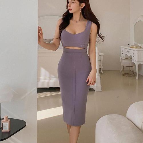 [신상오픈런]배꼽 하트넥 슬림핏 타이트 컷아웃 뷔스티에원피스 (30321878)