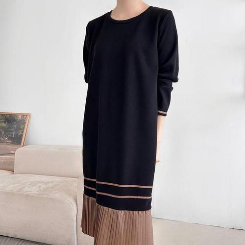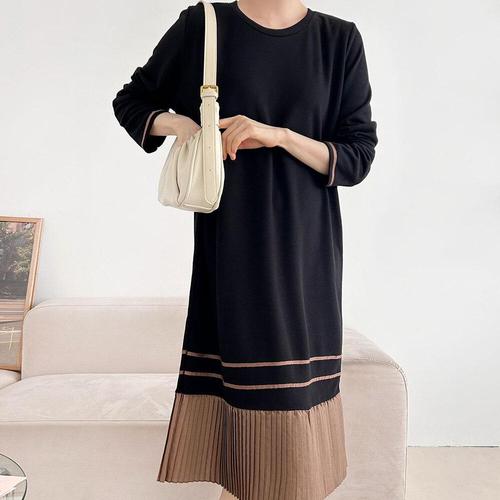 [옷자락] 여성 플리츠 배색 빅사이즈 가을 등원룩 긴팔 롱원피스