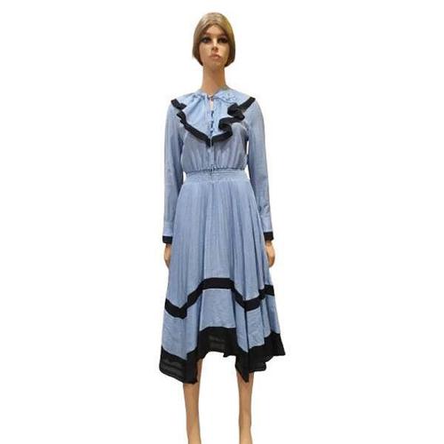[셀럽하우스]심플 JIMI2969 라운드넥 코튼 배색 플리츠 주름 롱원피스