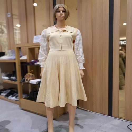 [신상오픈런]여자 레이어드 배색 끈나시 양트임 긴팔 롱원피스 세트 (41032410)