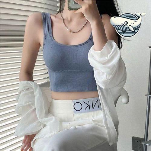 [옷자락] 여자 여름 캡내장 백리스 이너 브라탑 크롭 나시티