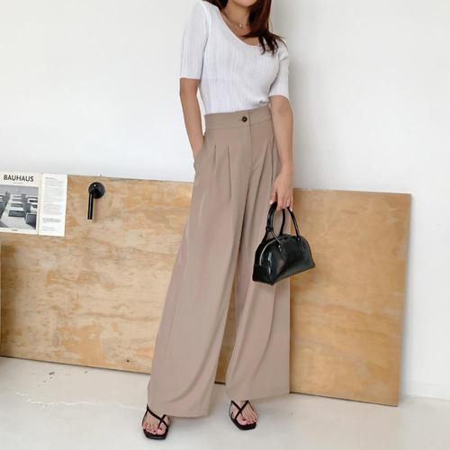 수미엘 여성 정장 세미 와이드 뒷밴딩 슬랙스 팬츠