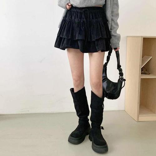[신상오픈런]여성 캐주얼 벨벳 캉캉 플리 밴딩 미니 스커트 (43165158)