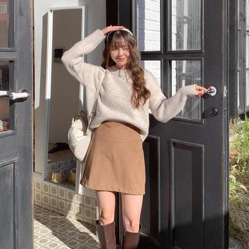 [신상오픈런]스웨이드치마 겨울 에이라인 검정색 미니스커트 백밴딩 (28829318)