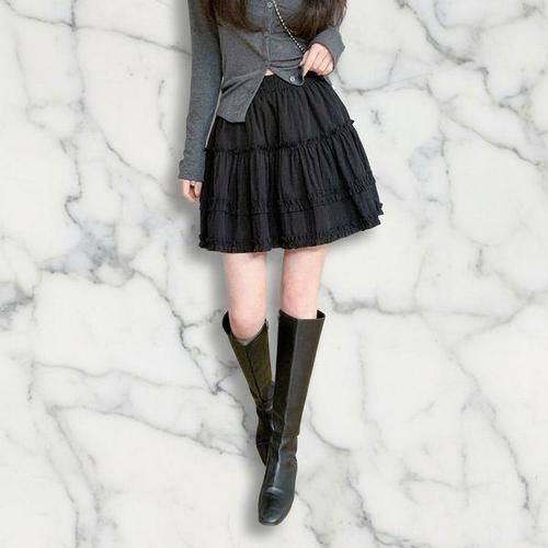 [옷자락] 여자 편안한 밴딩 사랑스러운 프릴 캉캉 미니스커트