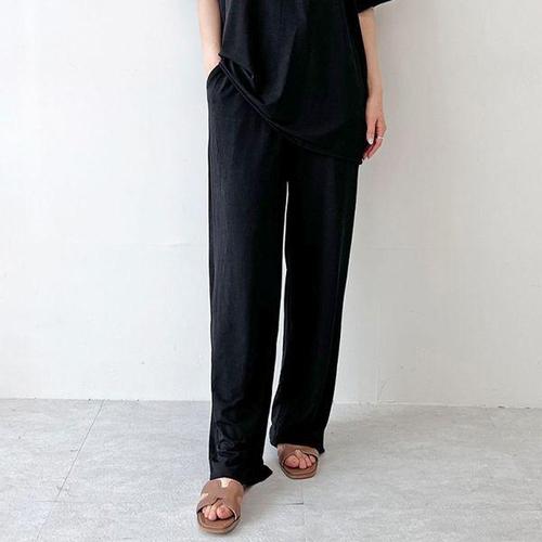 샵앤) 여성 리본 허리밴딩 쿨아이스 찰랑 와이드 팬츠 PIC-WPT-20649-블랙