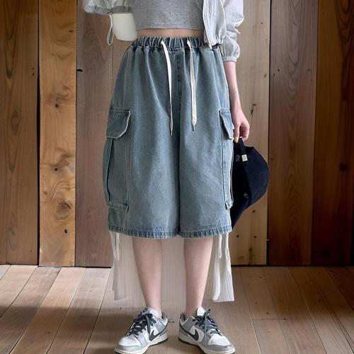 [신상오픈런]여성용 벌룬 반바지 여름 카고 스타일 밴딩 청바지 (32776942)