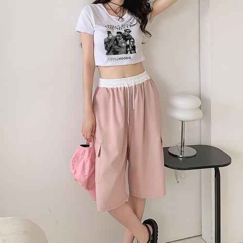 [신상오픈런]여성 카고 반바지 배색 밴딩 스포티 여름용 (36231596)