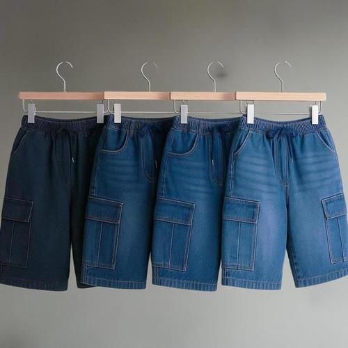 [신상오픈런]남성 청반바지 카고 스타일 밴딩 와이드핏 데님 버뮤다 팬츠 (38541321)