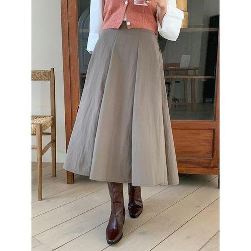 [샵앤][샵앤] 국산 여성 밴딩 플레어 바스락 절개 롱스커트 STJ-WSK-4864-코코아