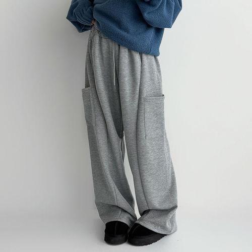 [옷자락]여자 기모와이드 트레이닝팬츠 겨울 끈밴딩 기본 바지