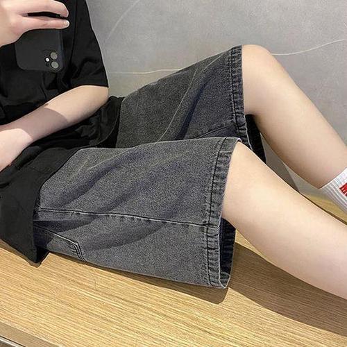 [에이치플러스몰]여성 와이드핏 허리밴딩 데님 반바지 여름 하프팬츠