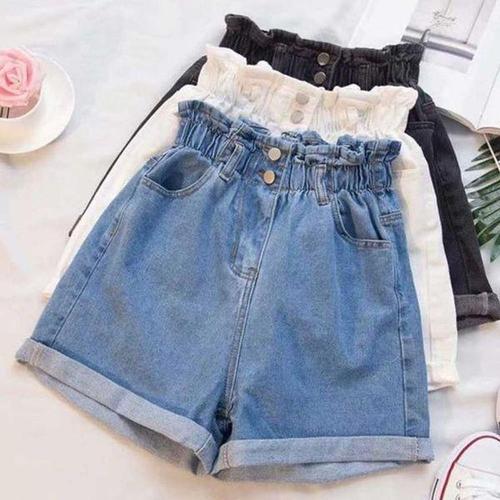 [에이치플러스몰]투버튼 밴딩 청반바지 반바지 데님 여성