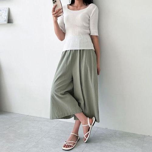 소고 세이브존01 뒷 밴딩 린넨 혼방 크롭 와이드 바지 TL2XA01