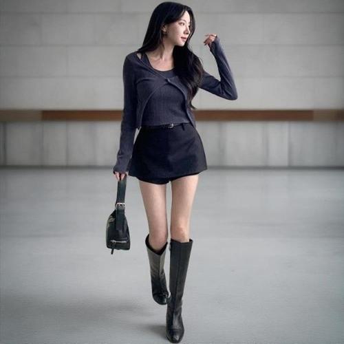 모던 벨트세트 A라인 랩 미니스커트 큐롯 겨울 모직 치마반바지 (2color)