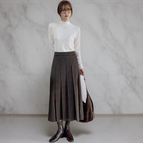 옷자락 / 여자 겨울 연말룩 링벨트 핀턱 A라인 기모 롱스커트