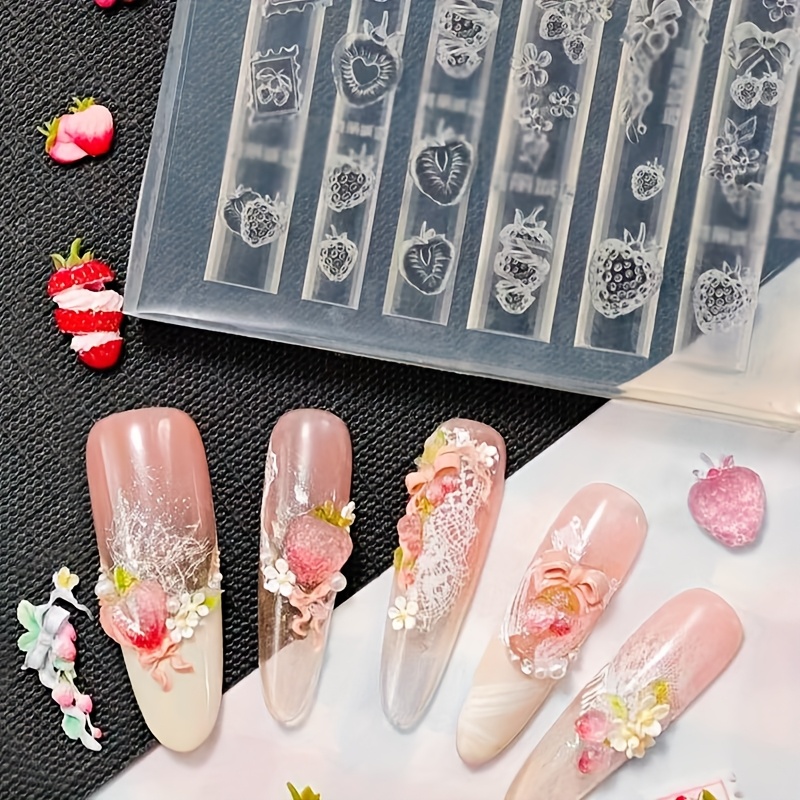 TEMU 딸기 과일 네일 아트 실리콘 몰드 - 창의적인 DIY 네일 몰드, 착용 가능한 네일 장식 몰드, 네일 살롱을 위한 인기 레진 몰드
