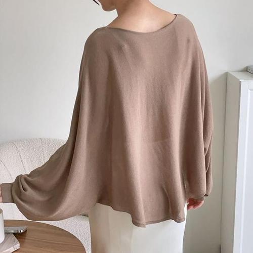 [미라클세븐]판쵸니트 가오리 뱃살커버 보트넥 비스코스티셔츠