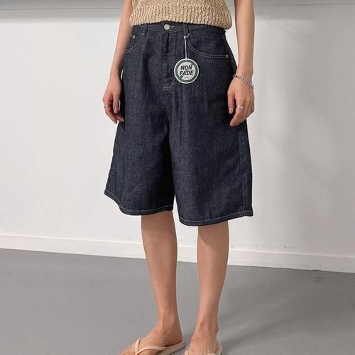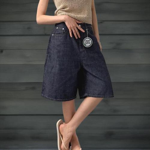[신상오픈런]여자 썸머 버뮤다데님 와이드 로우라이즈 면 청반바지 (36390172)