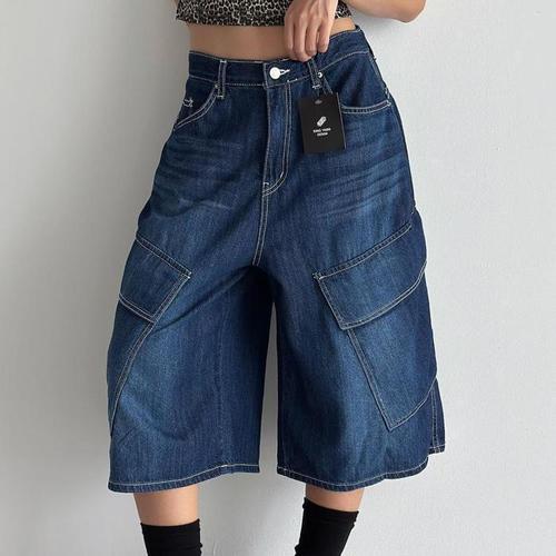 [신상오픈런]여성 링사 버뮤다 청반바지 스티치 카고 디자인 (38293109)