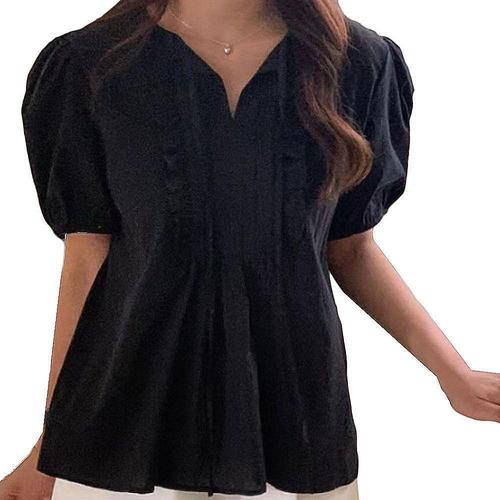 여성 퍼프 리본 프릴 블라우스 로맨틱 데일리룩 WFKMEJZ