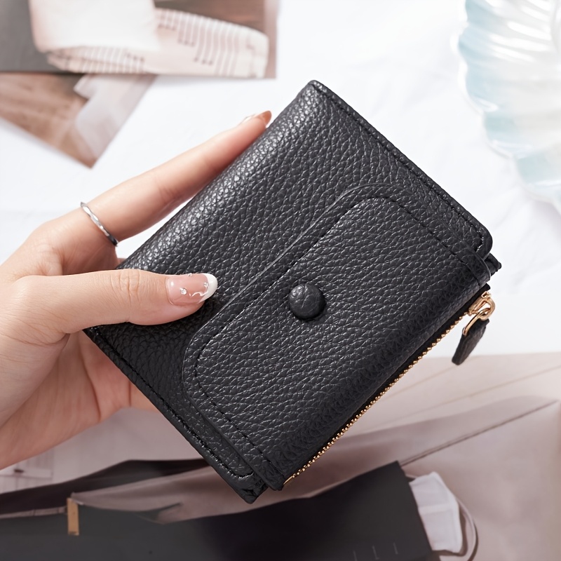 TEMU 시크한 여성용 컴팩트 지갑, 측면 지퍼 - 슬림한 단색, 가벼운 & 접이식 디자인, 동전 및 필수품용
