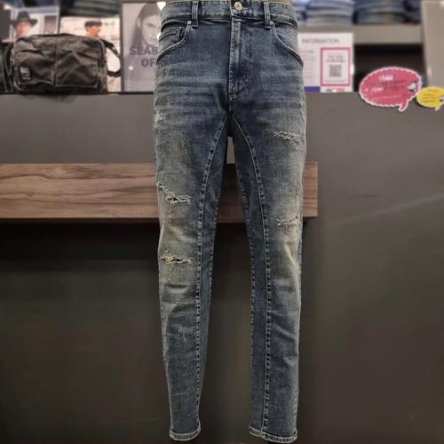 [버커루]남성 프리미엄 데미지 워싱 테이퍼드 슬리 데님 팬츠_US