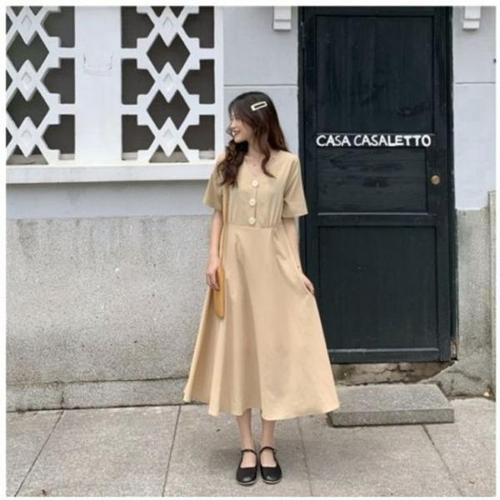 [퀸이즈][퀸이즈] 플레어 버튼 포인트 롱 원피스
