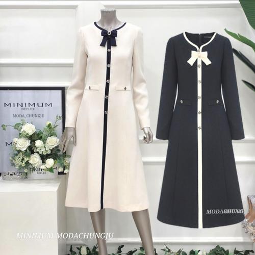 [미니멈]MD 라인 배색 버튼 플레어 원피스 MD MM1AGWO1950LE1