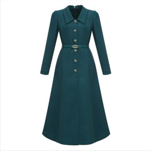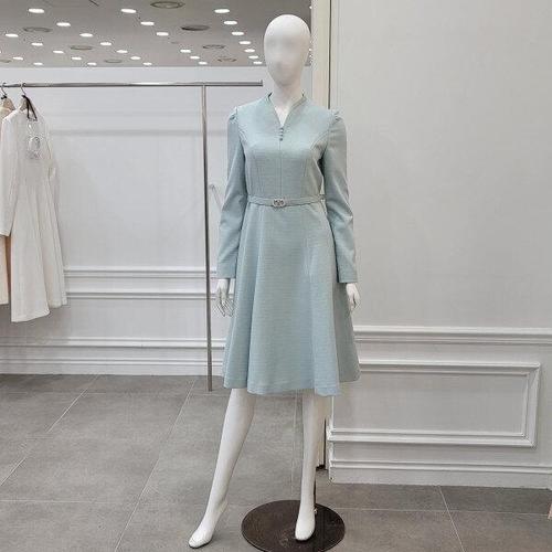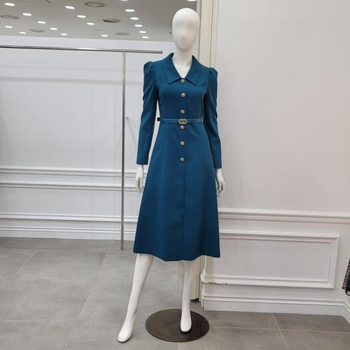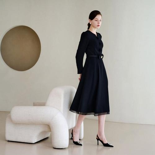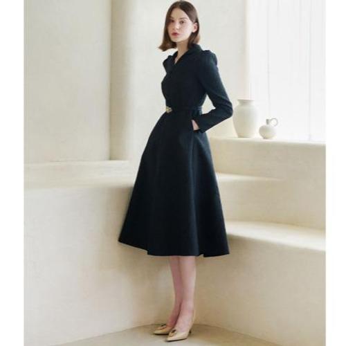 비비디아 여성 봄 가을 클래식 카라넥 금장버튼 플레어핏 하객룩 오피스룩 원피스 데일리룩(벨트포함)5573