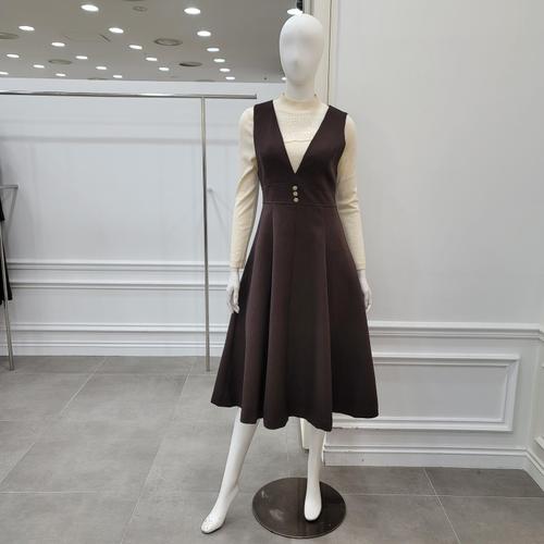 [미니멈]브이넥 버튼포인트 플레어 원피스 (MYDAWO1160 DR)_IC