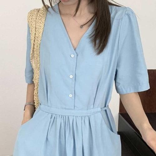 [엄지척]미니원피스 브이넥 원피스 버튼 플레어스커트 심플 니_19861491_667501
