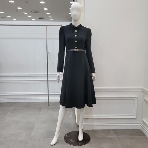 [아니베에프]A53WOP310 라운드넥 버튼장식 플레어 원피스