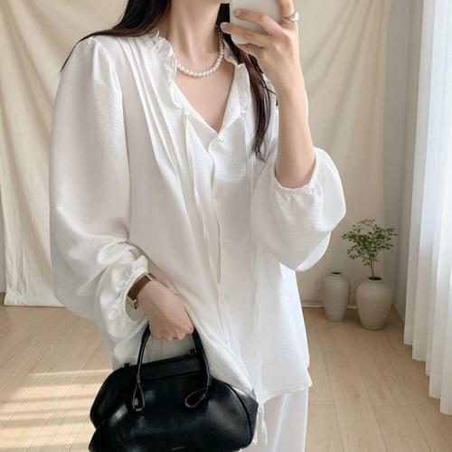 |CDH3BDD|흰블라우스 소매셔링 벌룬 아방핏 무지남방 여성봄코디