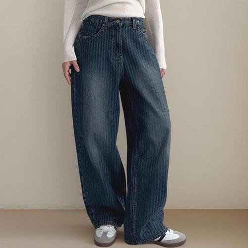 [옷자락]여성 스트라이프 워싱 로우라이즈 벌룬 와이드 진