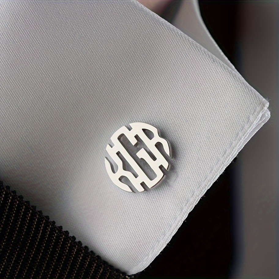 TEMU 남성용 원형 인터위벤 레터 커프스, 개인 맞춤 스테인리스 스틸 로고 커프스 (1-3글자), 남성 정장, 셔츠, 결혼식, 비즈니스 주얼리, 아버지, 아들 또는 남자친구를 위한 선물로 적합