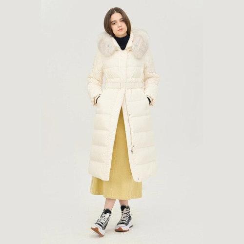 겨울 리얼폭스퍼 탈부착후드 슬림핏 여성 오리털 7부코트 덕다운 패딩점퍼 벨트포인트