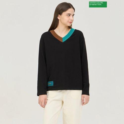 [베네통]컬러블럭 네크 티셔츠 BATSA3561