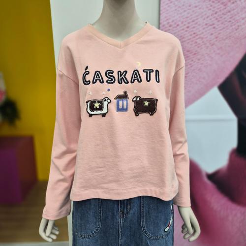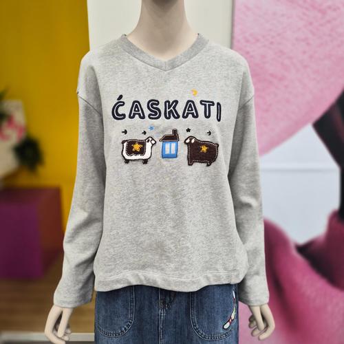 [베네통]베네통 양 자수 브이넥 티셔츠 BATS04511 GR
