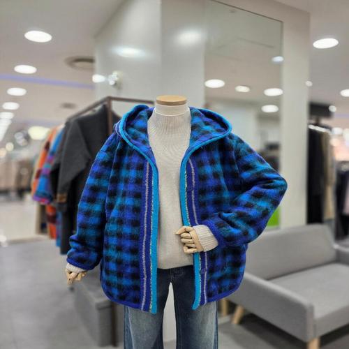[베네통]체크 후드 집업 하프 코트_BACT65461