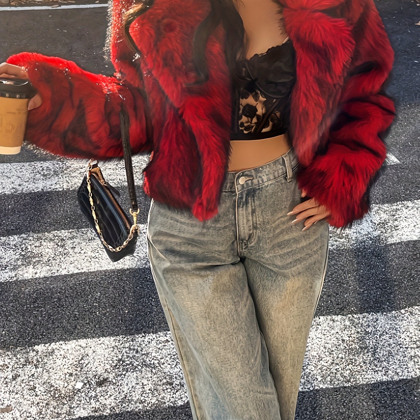 TEMU 여성용 따뜻하고 우아한 반팔 플러시 페이크 코트 - 겨울철 캐주얼 소매를 갖춘 따뜻하고 우아한 아우터