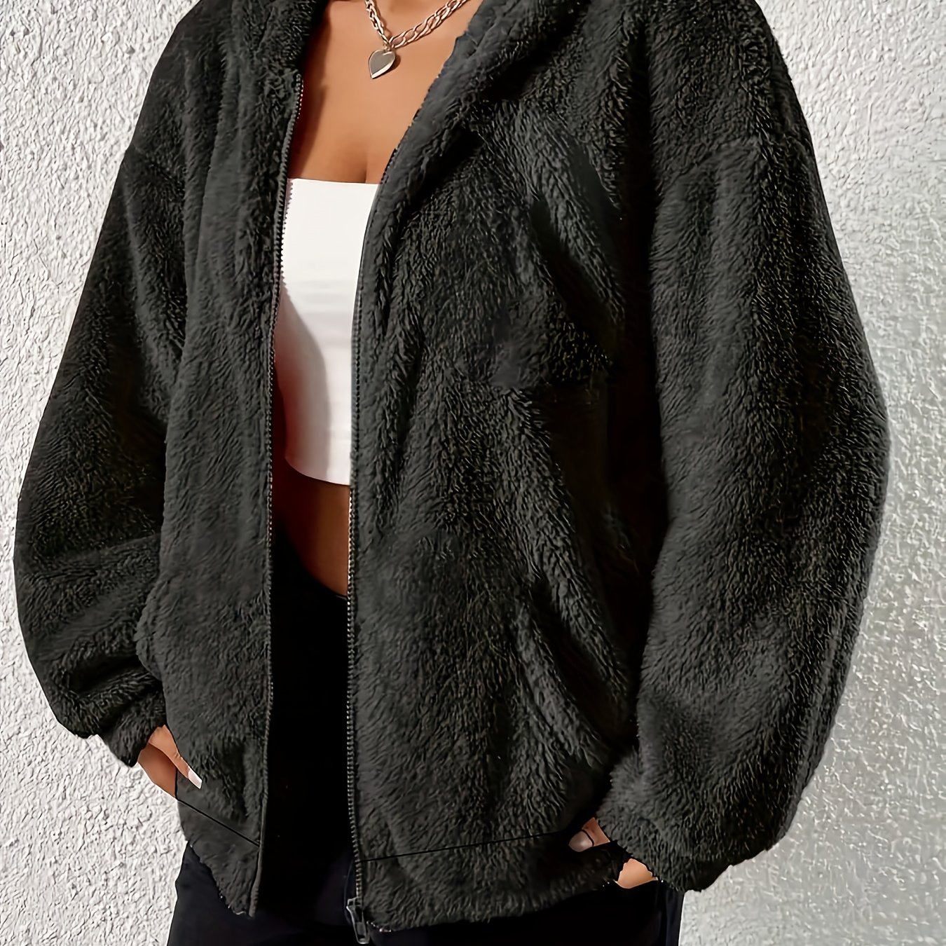 TEMU 여성용 루즈하고 부드러운 레이지 스타일 후드 스웨터 코트