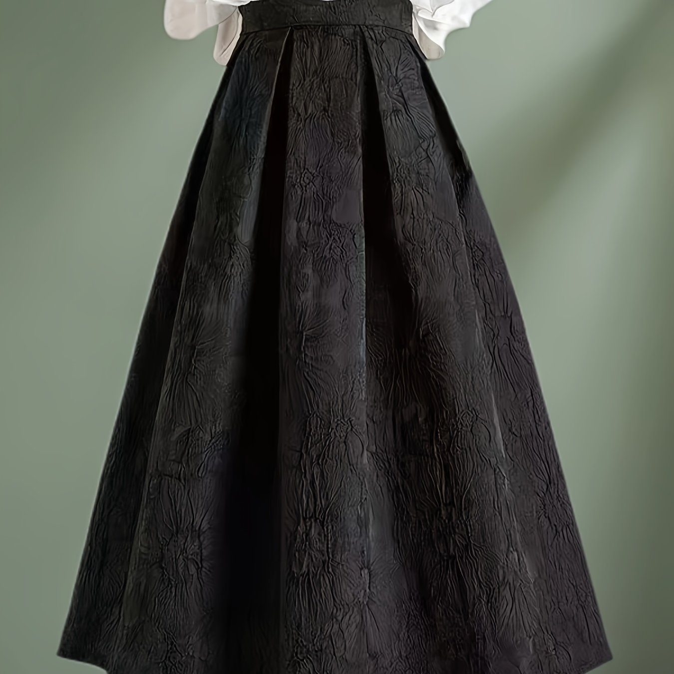 TEMU 블랙 자카드 엠보싱 장미 하이웨이스트 스커트, 플레어 디자인으로 결점을 가리고, 데일리룩으로 완벽합니다.
