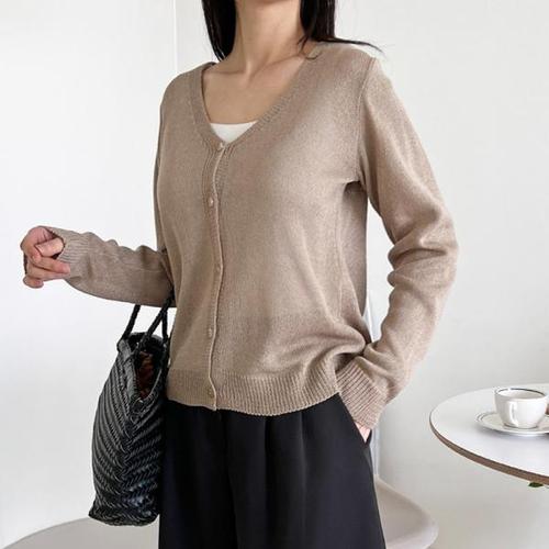 [셀러허브_여성트랜드패션]ONM 여름 브이넥 린넨 가디건 캐주얼 반팔 니트
