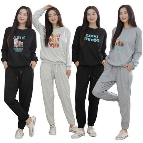 [드리다]여성 겨울 기모 베어 맨투맨 티셔츠 트레이닝 조거 셋트 츄리닝바지 40-50대 미시 캐주얼