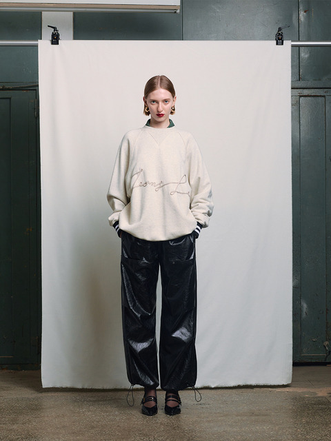 [진 리] 베이지색 오버사이즈 코듀로이 자수 스웨트셔츠